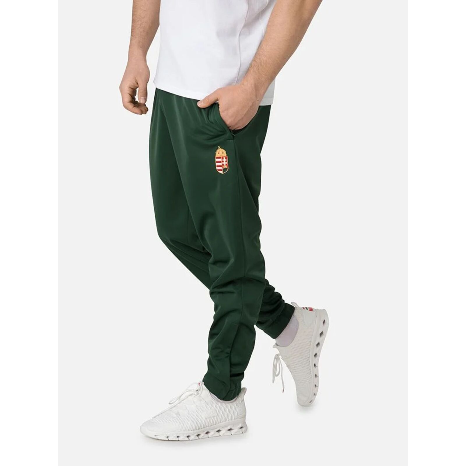 Az új Dorko Hungary kollekció legelegánsabb darabja a CEREMONY gálamelegítõ. A letisztult megjelenésû, stílusos nemzeti motívumokkal hímzett szabadidõ alsó 100% poliészterbõl készült. A gumírozott derékrész és az alul cipzárral nyitható kialakítás praktikus és kényelmes viseletet tesz lehetõvé. Könnyen száradó, légáteresztõ, elasztikus anyagának köszönhetõen többféle alkalomhoz és mozgásformához kitûnõen használható. A harmonizáló felsõrésszel kiegészítve emblematikus helyet foglal el a pódium kollekcióban.