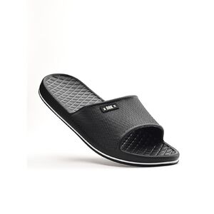 A súlytalan erõ. - A SPLASH férfi papucs a legrövidebb út a lazulásig. Egybefüggõ gumi anyagába EVA talpat integráltunk, hogy puha és kényelmes alapot adjunk a lelassuláshoz. A finoman texturált pánt és talpágy dinamikus megjelenést kölcsönöz a modellnek. Klasszikus, minimalista fekete és navy színben érhetõ el, hogy a hangsúly a letisztult erõn és a megalkuvást nem tûrõ funkción maradhasson. Bárhol is járj: a SPLASH papucs a te komfortzónád.
