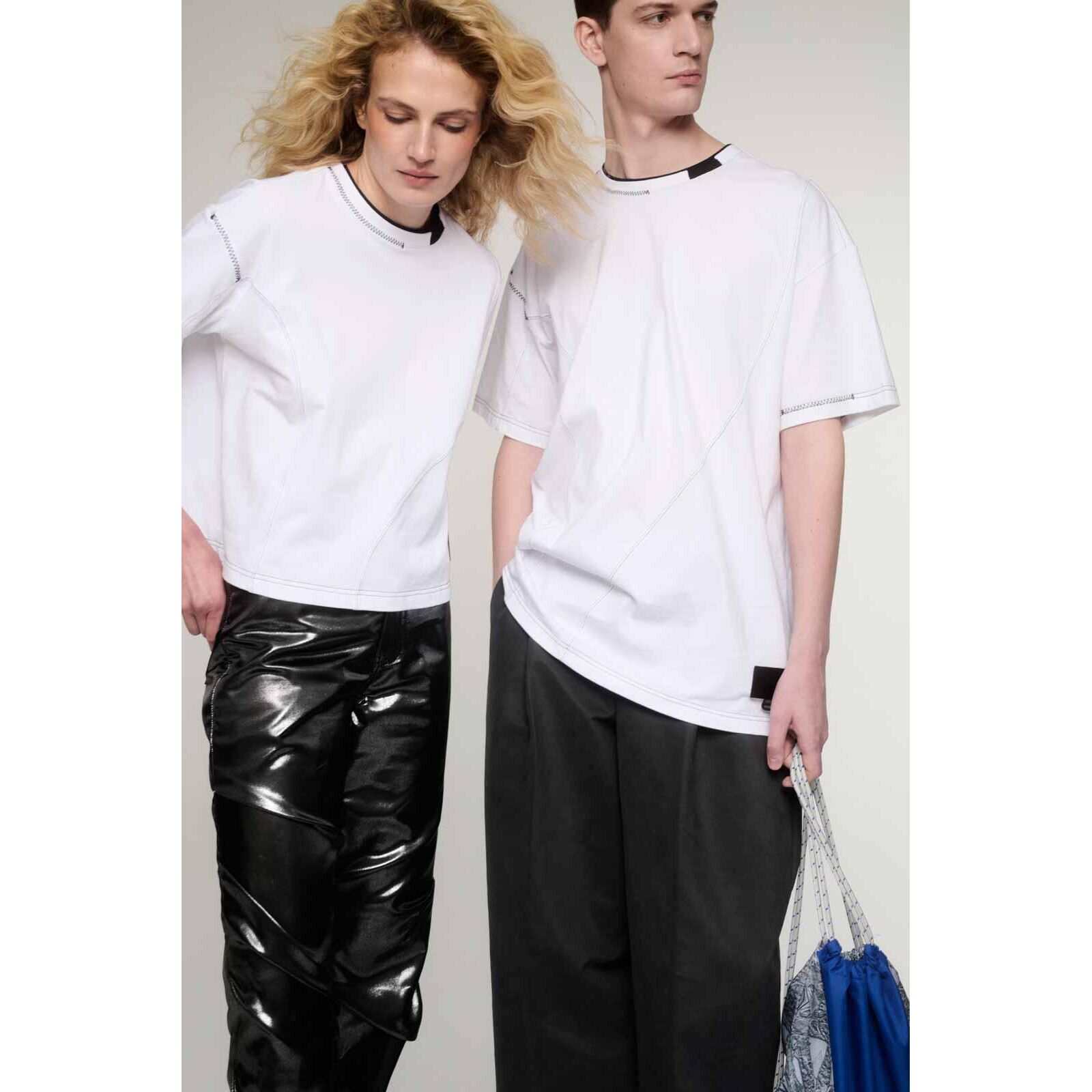 High-fashion kéznyújtásra. - A LAWRENCE oversize férfi póló a DORKO és a neves magyar designer, Szegedi Kata közös víziójának gyümölcse. Ez a darab a high-fashion és a streetwear találkozása: a minõségi, vastagabb pamut anyag karakteres tartást ad az oversize fazonnak, kiemelve a póló strukturált jellegét. A különleges részletek, mint a dupla nyakmegoldás, a dekoratív dísztûzések és az egyedi szabásvonalak messzirõl felismerhetõvé teszik ezt a darabot. Az exkluzivitást pedig a márkajelzések teszik teljessé: Kata logója egy prémium PU patch-en, míg a DORKO logó egy szövött címkén jelenik meg. - Ki az a Szegedi Kata?. - Szegedi Kata a kortárs magyar divat egyik legmeghatározóbb tervezõje. Saját márkáját a modern, nagyvárosi ember köré építi, akit az önkifejezés és a magabiztosság vezérel. Kollekcióiban a kísérleti szabásvonalak, az építészeti formák és a prémium anyaghasználat dominálnak. Kata munkássága nemzetközileg is elismert, ruhái rendszeresen láthatók a világ divatfõvárosainak kifutóin és a legnagyobb divatlapok hasábjain. - Miért fontos nekünk a magyar tervezõkkel való együttmûködés?. - A design nem a luxusnál, hanem az egyediségnél és az emberközpontúságnál kezdõdik. A Dorkónál tudatosan választjuk a magyar mûvészekkel való kollaborációt. Ezzel támogatjuk a helyi kreatív közösséget, és bizonyítjuk: szívügyünk az igazi minõség és egyediség. - Így viseld a LAWRENCE pólót. - Használd ki a póló építészeti jellegét: viseld szûkebb szárú, sötét nadrággal és egy minimalista sneakerrel, vagy menj a maximális hatásra: kapd elõ a legszélesebb szárú nadrágodat. Ha a teljes designer-hatásra vágysz, keresd a DORKO x Szegedi Kata kollekció további észveszejtõ modelljeit. A LAWRENCE póló nemcsak viselet, hanem állásfoglalás is rendeld meg most, és legyen tiéd a hazai design egy darabja.