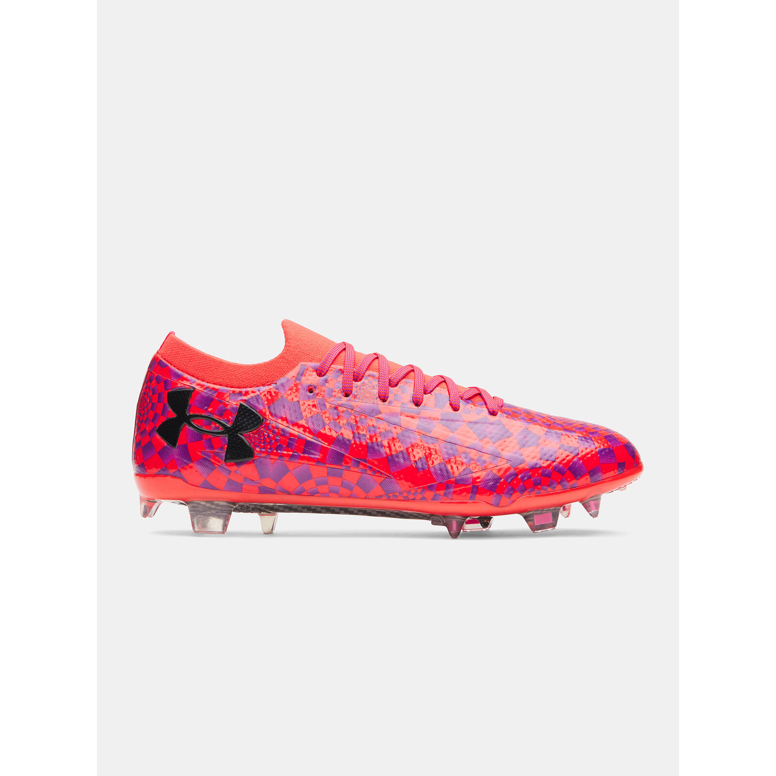 Továbbfejlesztett UA IntelliKnit felsõrész a minimalista, ergonomikus kialakításért, amely második bõr érzetet biztosít.Never-Wet vízálló felületkezelés, amely szárazon és hvösen tart.Stratégiailag bordázott szerkezet a jobb labdakontrollért és TPU felület a maximális labdaérintkezésért.A formázott betét kényelmet biztosít a láb alatt.Szénszálas talp a maximális gyorsulásért és lassításért.