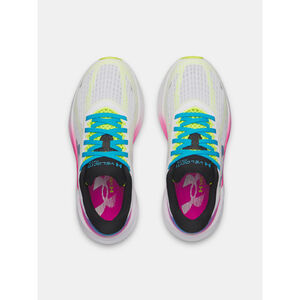Az áttetszõ mono hálós felsõrész könny, légáteresztõ és feltárja a belsõ megerõsítést a lábközépnél és az elülsõ részen.Hagyományos gallér és nyelv konstrukció a legjobb illeszkedésért.Az UA HOVR technológia csökkenti az ütéseket, visszaadja az energiát és segít elõrejutni.Teljes felület gumitalp a tapadásért és a tartósságért.