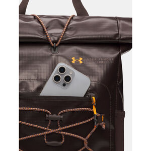 Felcsavarható kialakítás gumiszalaggal és horoggal.A beépített laptoptartó akár egy 13"-os laptopot is képes tárolni.Elülsõ cipzáras zseb az értékeknek és 2 oldalsó zseb a vizespalacknak.Állítható elülsõ pánt a kabát, cipõ vagy labda egyszer tárolásához.A fõszövet legalább 90%-ban újrahasznosított poliésztert tartalmaz, a szegélyek és részletek kivételével.Felsõ fogantyú és mellkascsipesz a biztonságosabb tartásért.Méretek teljesen megtöltve: 12,5cm Sz x 43cm M x 27cm H (összecsukva és a pánttal rögzítve).rtartalom: 18L (összecsukva és a pánttal rögzítve).