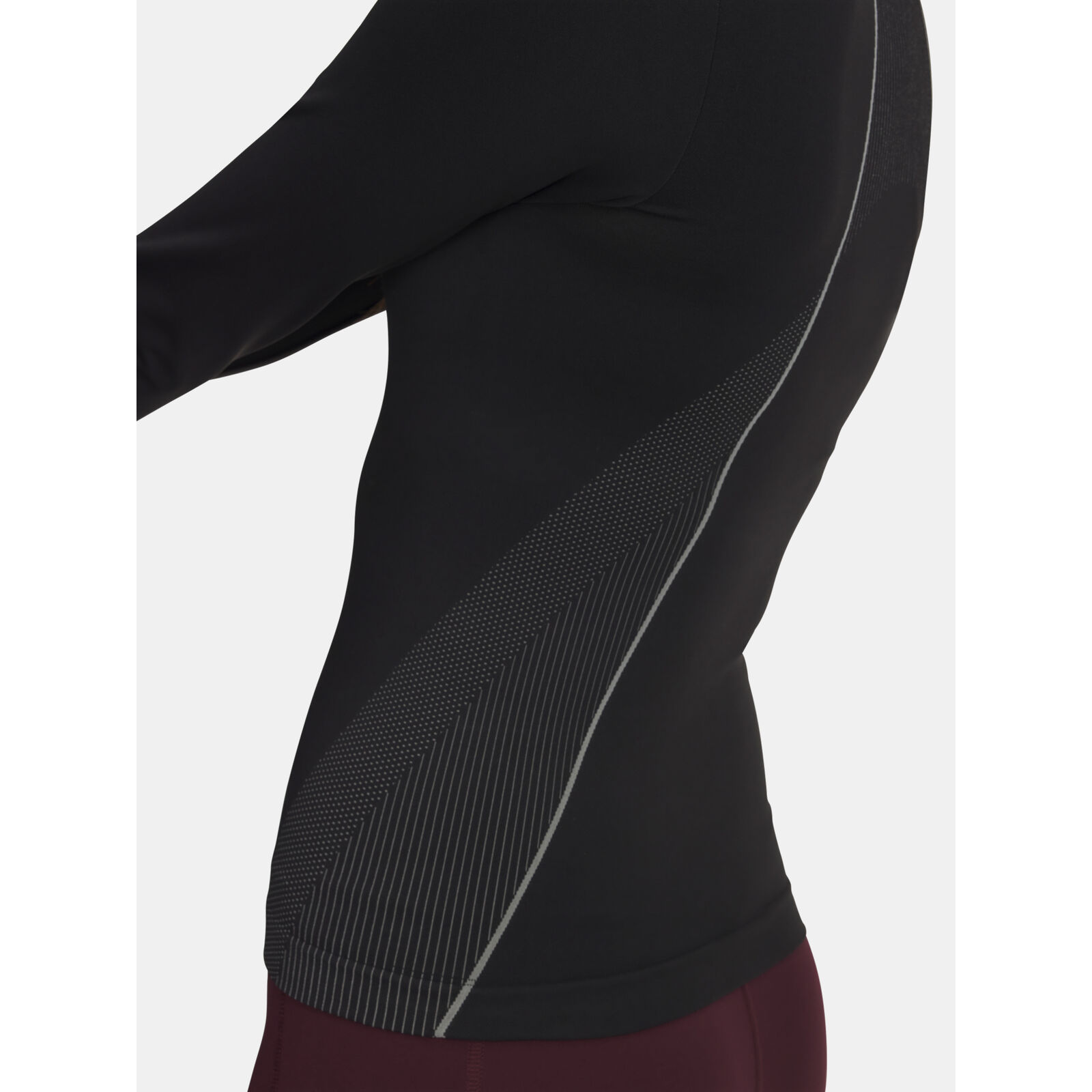 Nagyon puha, kéttónusú kötött anyag, amelynek textúrája alkalmazkodik az alakhoz, vonzóbbá téve azt.A szinte varratmentes konstrukció kiküszöböli a kidörzsölõdést.A 4-Way Stretch technológia szabad mozgást tesz lehetõvé minden irányban.Az anyag elvezeti az izzadságot és nagyon gyorsan szárad.A cipzáras elülsõ rész megkönnyíti a rétegezést.