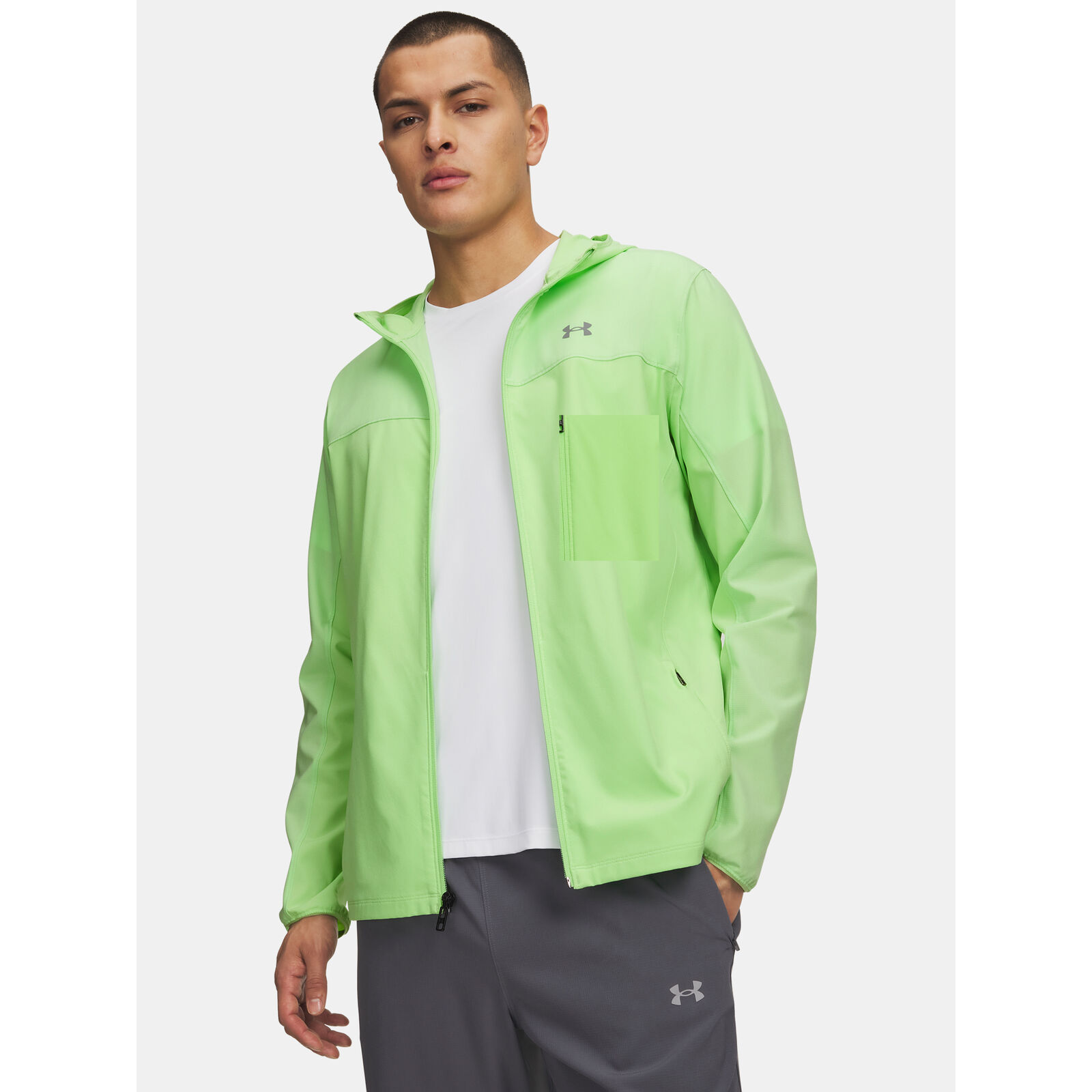 UA Storm technológia taszítja a vizet a légáteresztõ képesség csökkentése nélkül.A könny, sztreccs szövet ripstop szövött elülsõ panellel kiváló kényelmet és tartósságot biztosít.Elülsõ és hátsó szellõzõnyílások a jobb légáteresztõ képességért.Kapucni gumiszalaggal állítható.Biztonságos cipzáras zsebek a kézen belsõ médiazsebbel.Rugalmas mandzsetták a karcsúsított szabásért.Fényvisszaverõ részletek a rossz fényviszonyok közötti futáshoz.