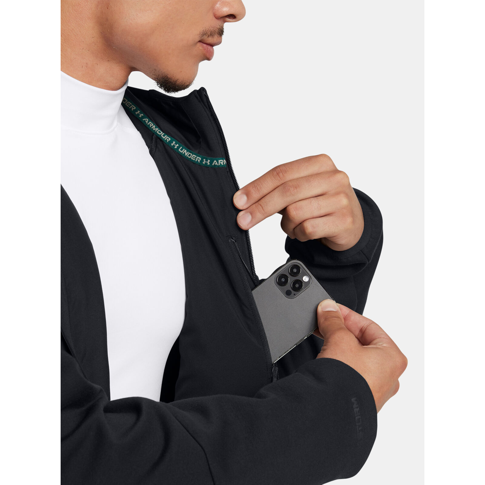 Az UA Storm technológia taszítja a vizet anélkül, hogy csökkentené a légáteresztést.A puha, lélegzõ dupla kötött szövet meleget biztosít további tömeg nélkül a kiváló kényelem és mozgékonyság érdekében.Stratégiai 80g szintetikus szigetelés a nagyobb melegért ott, ahol szükséged van rá.Biztonságos cipzáras zsebek a kezeknek puha trikóbéléssel, amely melegen tartja a kezeket, belsõ mellkasi cipzáras zseb.Szegély a kapucnin, a mandzsettákon és az alsó szegélyen a szoros illeszkedésért.Fluormentes vízlepergetõ kezelést használ.