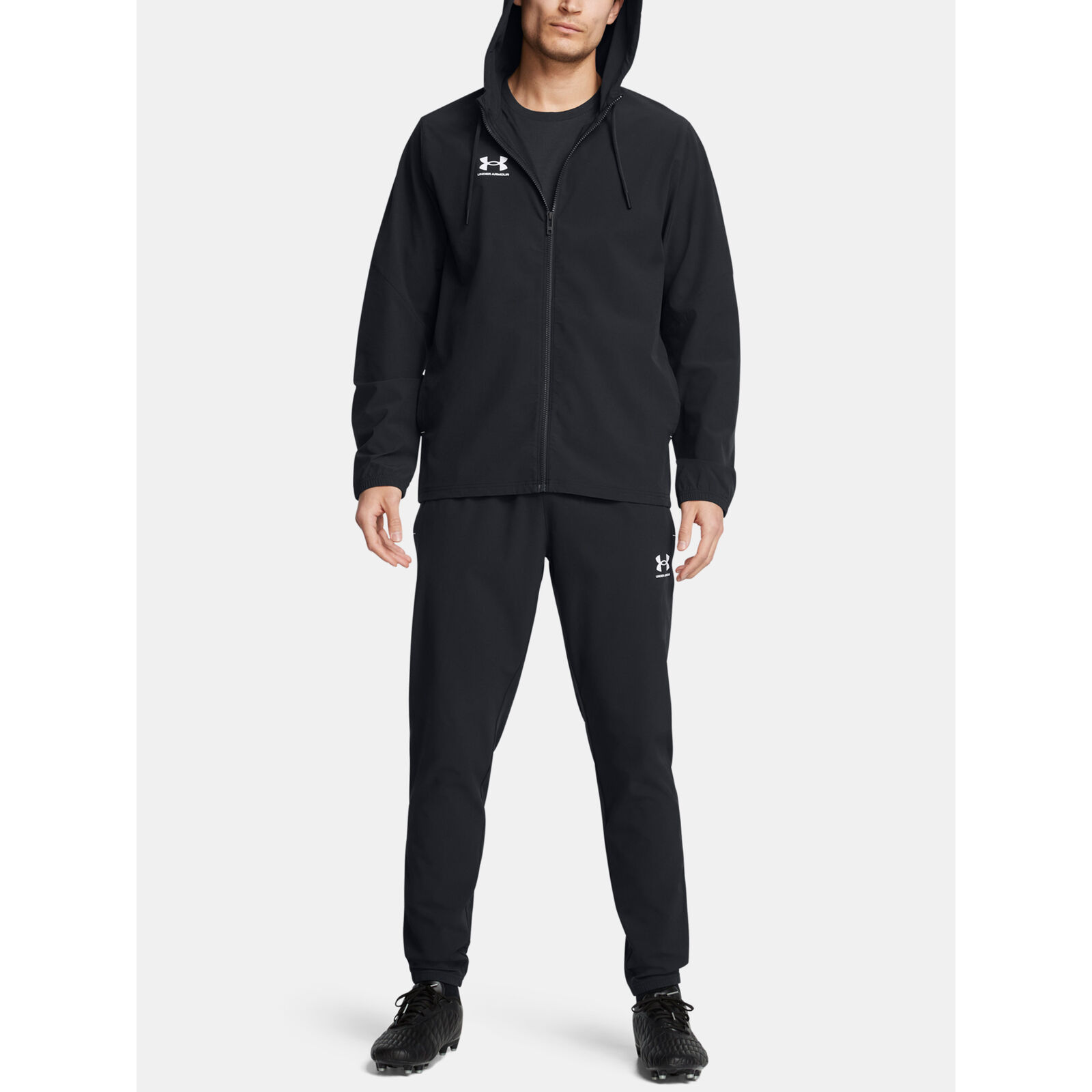 Az UA Storm technológia taszítja a vizet a légáteresztõ képesség csökkenése nélkül.A könny, rugalmas szövet kiváló kényelmet és tartósságot biztosít.Az anyag elvezeti az izzadságot és nagyon gyorsan szárad.A 4-Way Stretch technológia jobb mozgást tesz lehetõvé minden irányban.Kabát: Kapucni a nyaknál a nagyobb fedés érdekében húzózsinórral.Biztonságos cipzáras kézzsebek.Nadrág: Körbefutó elasztikus derékrész belsõ húzózsinórral.Biztonságos cipzáras kézzsebek.Szárhossz: 75 cm.