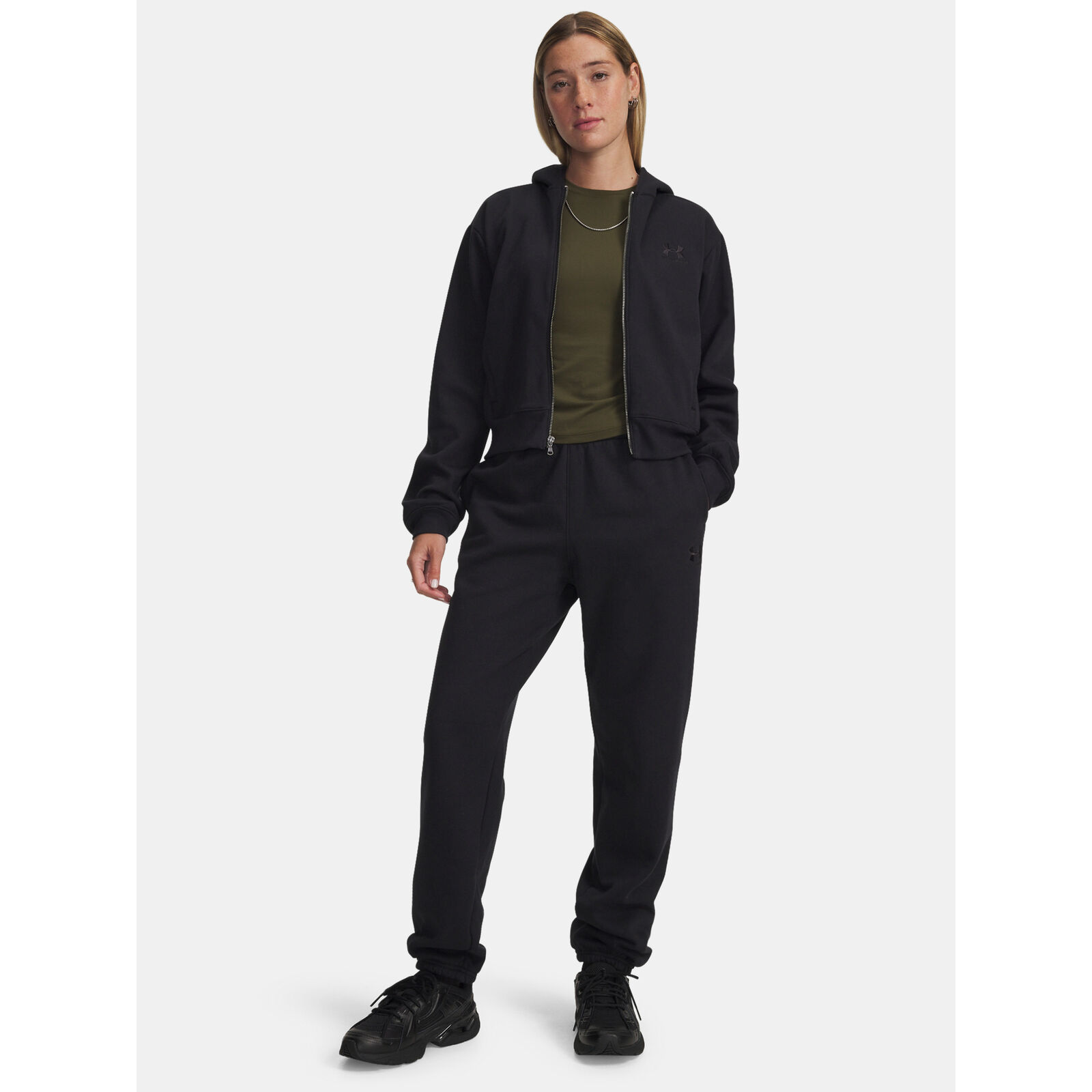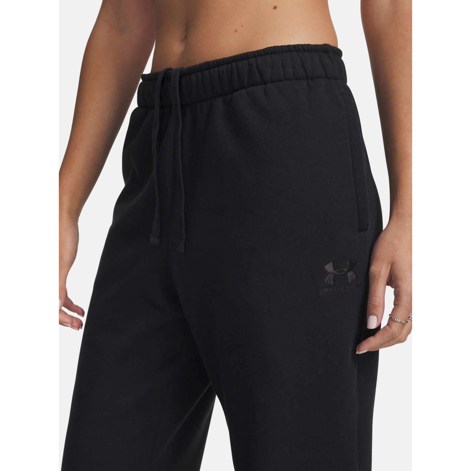 Nagyon puha, közepes súlyú fleece sima külsõ réteggel és meleg, puha belsõ réteggel.Rugalmas derékpánt belsõ húzózsinórral.Nyitott zsebek.Rugalmas mandzsetták.
