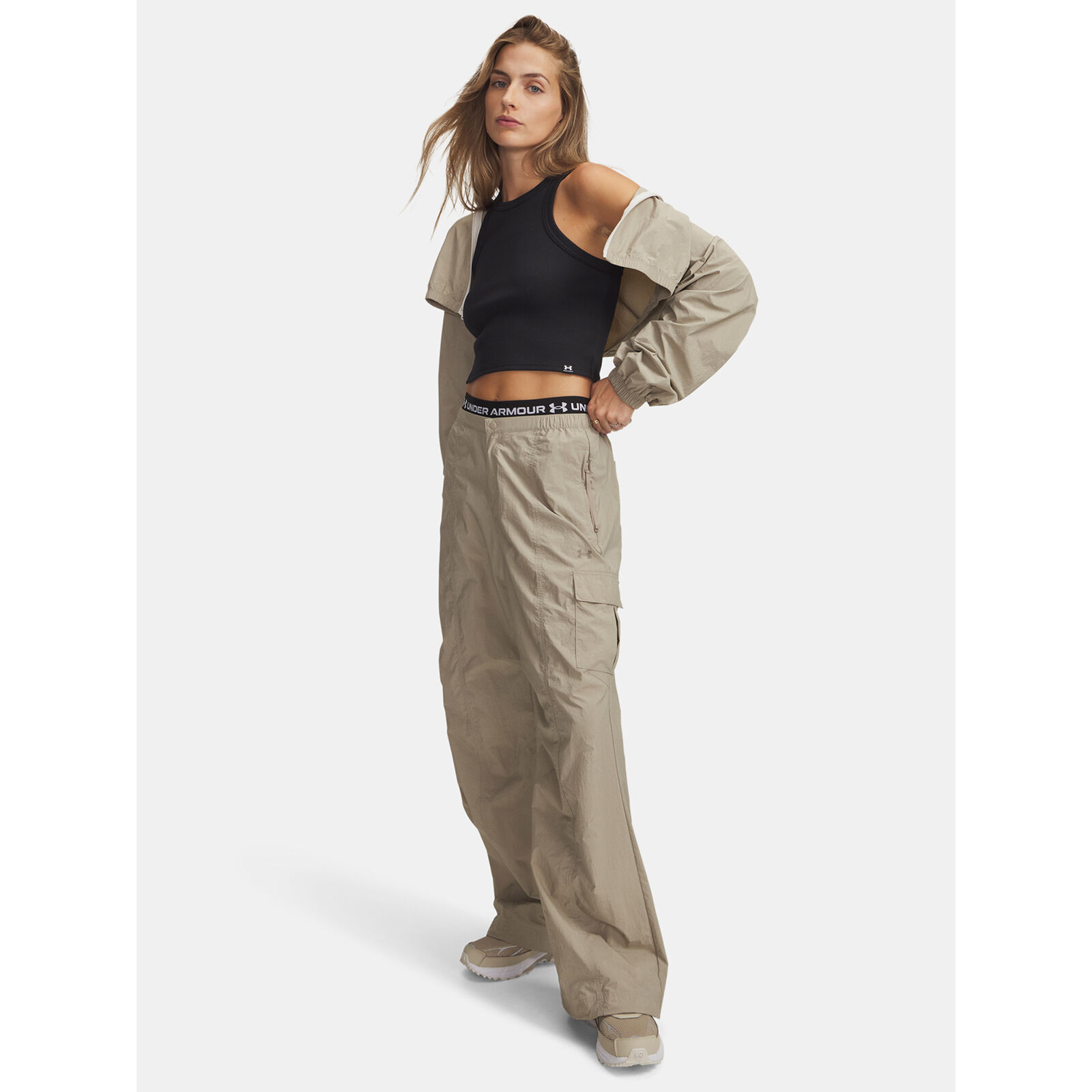 Rendkívül tartós ripstop szövet fényes felülettel, könny és kényelmes.Rugalmas derékpánt funkcionális gombos és patentos záródással.Biztonságos cipzáras zsebek, nyitott hátsó zsebek és patentos záródású zsebek.Gumiszalag az alsó szegélyen az egyéni illeszkedésért és megjelenésért.Laza szabás egyenes elülsõ résszel.