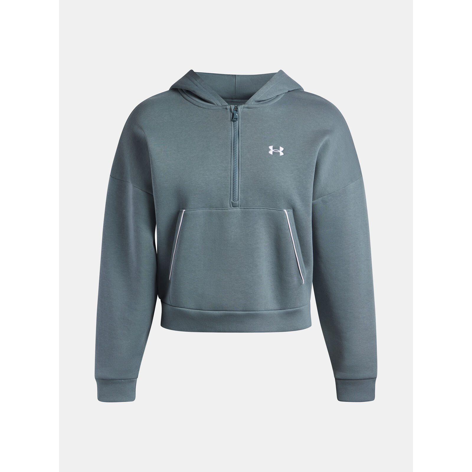 Nagyon puha pamut fleece bolyhosított belsõvel a nagyobb melegért.Elülsõ kenguru zseb.A karcsú ½ cipzár elöl megkönnyíti a rétegezést.Bordázott mandzsetták és alsó szegély.Leengedett vállszegélyek.Színes kontrasztos szegély.