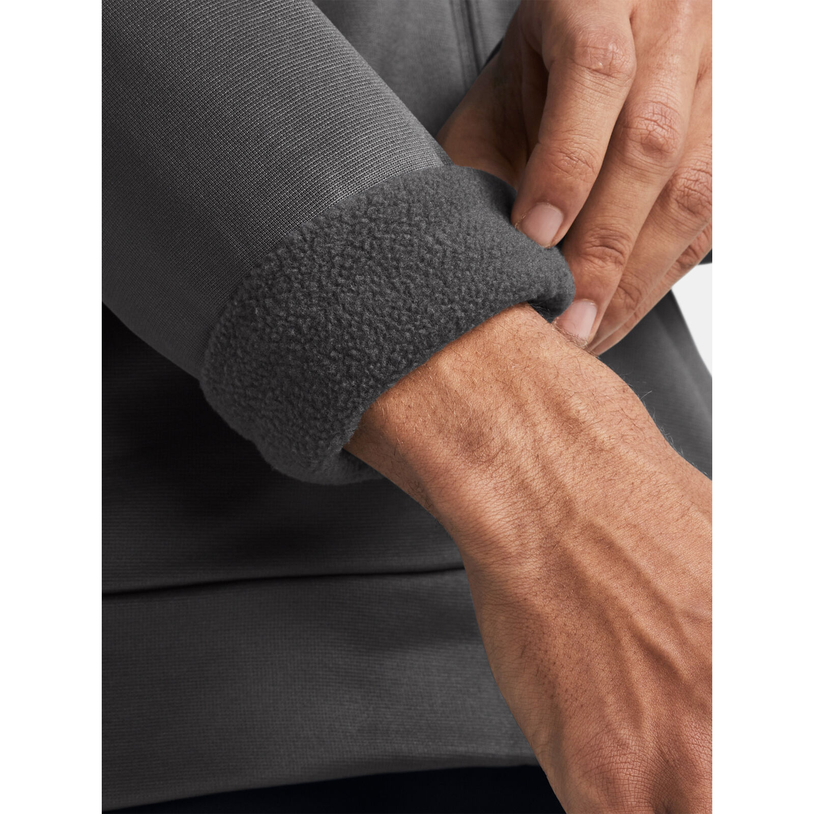 Az ArmourFleece könny, légáteresztõ, rugalmas és meleg, és mégis lehetõvé teszi a szabad mozgást.A puha belsõ réteg megtartja a hõt, a nagyobb melegség és kényelem érzetéért.Kapucni a nyaknál húzózsinórral a nagyobb fedésért.Nyitott zsebek a kezeknek.
