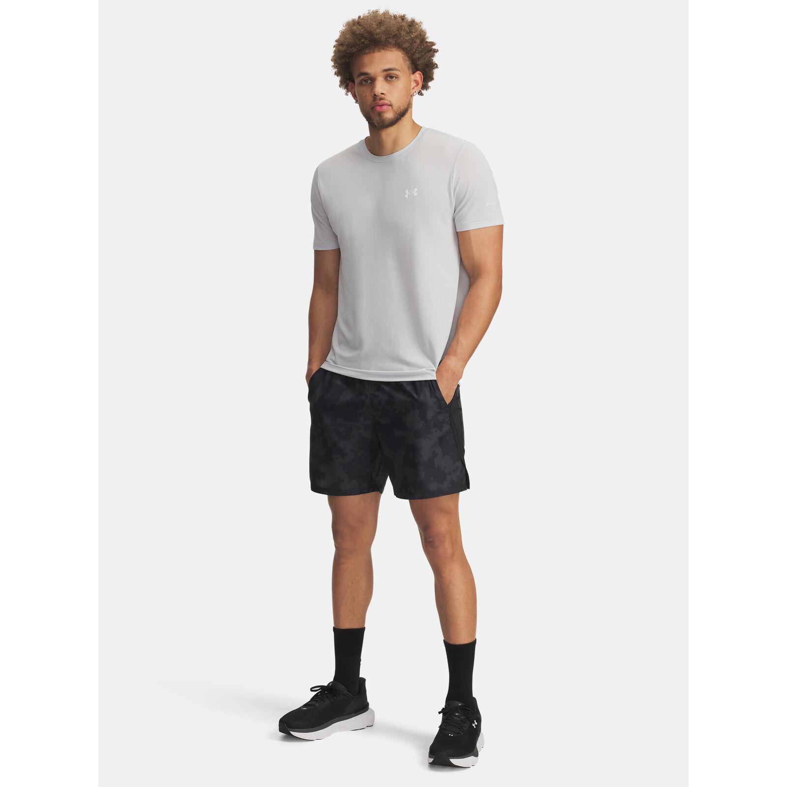A szövet könny, kényelmes és tartós.A belsõ hálós betét további fedést és támaszt nyújt.Az anyag elvezeti az izzadságot és nagyon gyorsan szárad.A szuper légáteresztõ hálós panelek jobb szellõzést biztosítanak.Puha kötött derékrész belsõ húzózsinórral a maximális kényelemért.Nyitott zsebek a kezeknek belsõ telefontartó zsebbel a jobb oldalon.A fõ test szövet legalább 90%-ban újrahasznosított poliésztert tartalmaz, a szegélyek és a részletek kivételével.