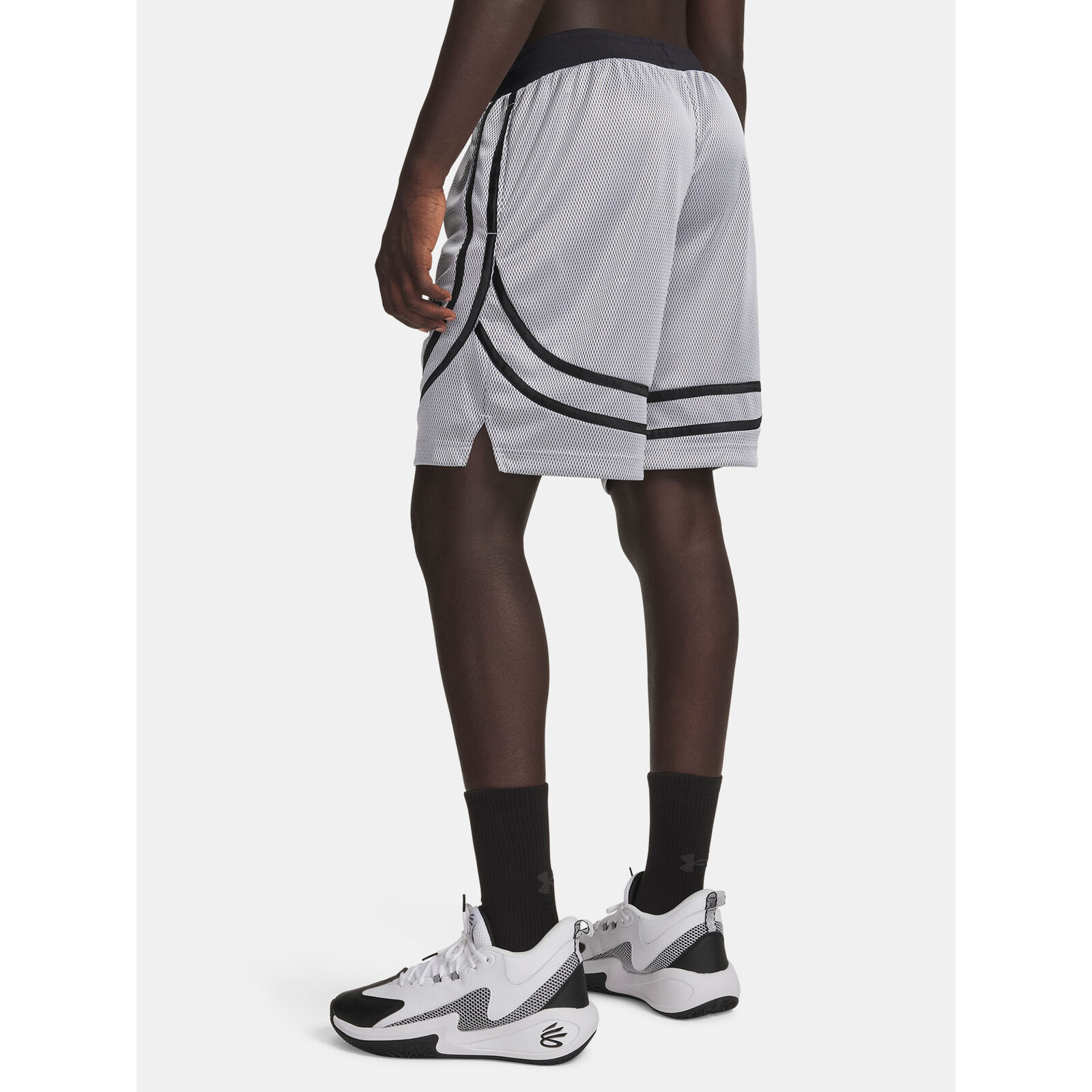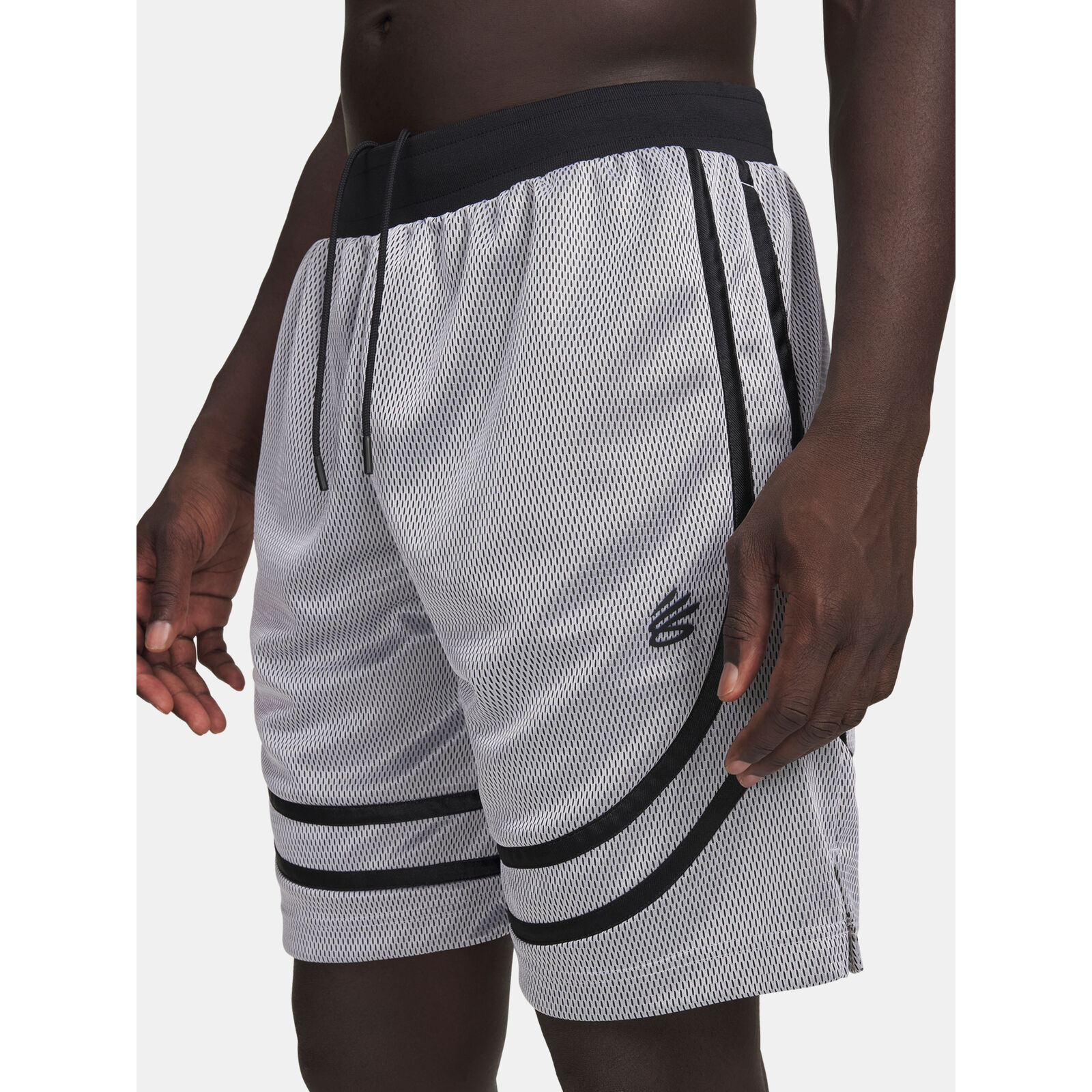 A nehéz hálós anyag puha és nagyon légáteresztõ, díszítõ trikópanelek.Az anyag elvezeti az izzadságot és nagyon gyorsan szárad.Rugalmas, bordázott derékrész belsõ húzózsinórral.Nyitott zsebek.Oldalsó hasíték.