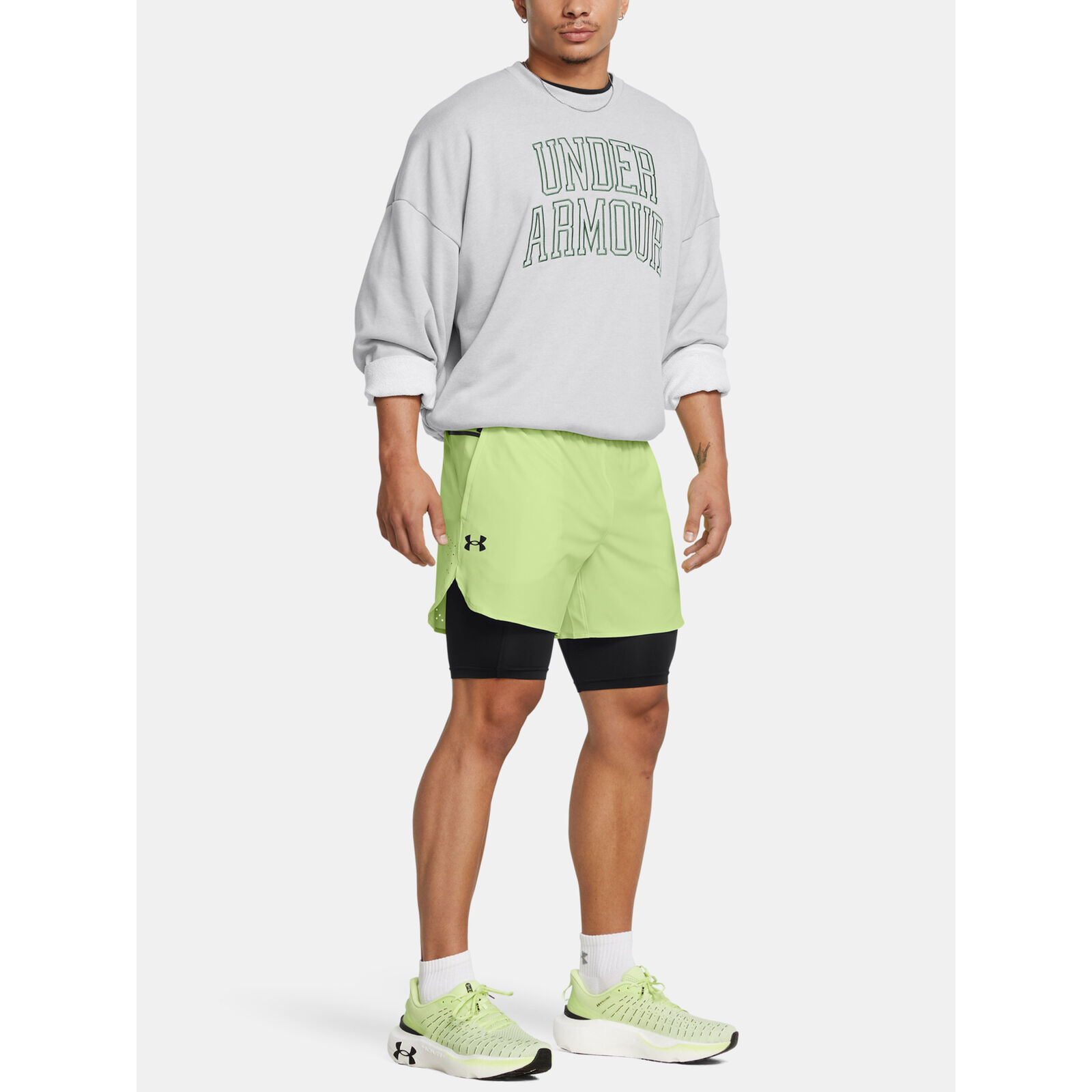 A könny, rugalmas szövet kiváló mozgékonyságot és tartósságot biztosít.Beépített kötött kompressziós rövidnadrág a nagyobb fedésért és támogatásért hálós panelekkel a stratégiai légáteresztés érdekében.Látható elasztikus derékpánt hálós szellõzéssel és belsõ húzózsinórral.Lézeres perforáció a jobb légáteresztés érdekében.A meghosszabbított betét jobb mozgékonyságot biztosít.Nyitott kézzsebek biztonságos cipzáras Strength Pocket zsebbel a jobb oldalon.Formázott oldalsó szegély a jobb mozgástartományért.Szárhossz (külsõ rövidnadrág): 12,7 cm.Szárhossz (bélés rövidnadrág): 20,32 cm.