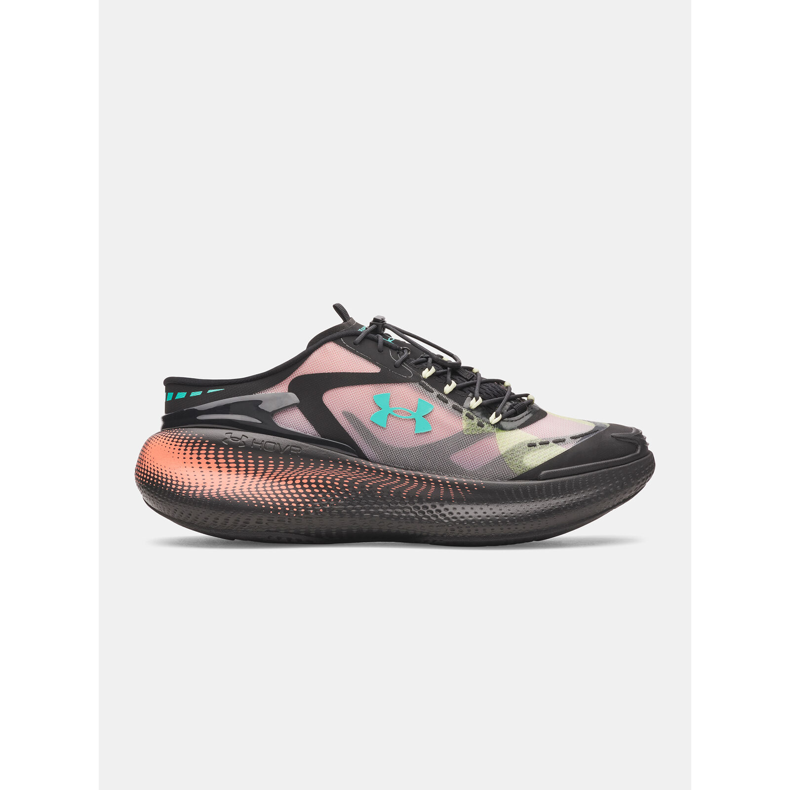 Többréteg, áttetszõ felsõrész lélegzõ monofil hálóval.Aszimmetrikus nyelv- és fzõrendszer a gyors illeszkedésért.Gumírozott orr a nagyobb tartósságért.A UA HOVR érzékeny párnázása csökkenti az ütést, visszaadja az energiát és segít elõrejutni.A konvertibilis UA SlipSpeed sarok lehetõvé teszi a könny átmenetet az edzési üzemmódból a regenerációs üzemmódba.Gumi külsõ talp a tapadásért bármilyen felületen.